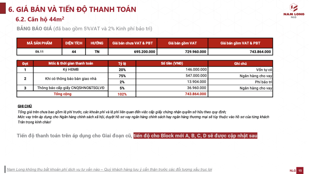 6. GIÁ BÁN & TIẾN ĐỘ THANH TOÁN